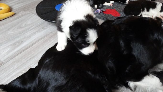 Agilepaws Infinity Devotion - Kayleigh hat uns am 03.01.2026 in einer Bilderbuchgeburt 9 Welpen geboren. Es sind 7 Mädels und 2 Jungs. Sie ist eine tolle, fürsorgliche Mama, alle Babies und Kayleigh sind fit und munter.